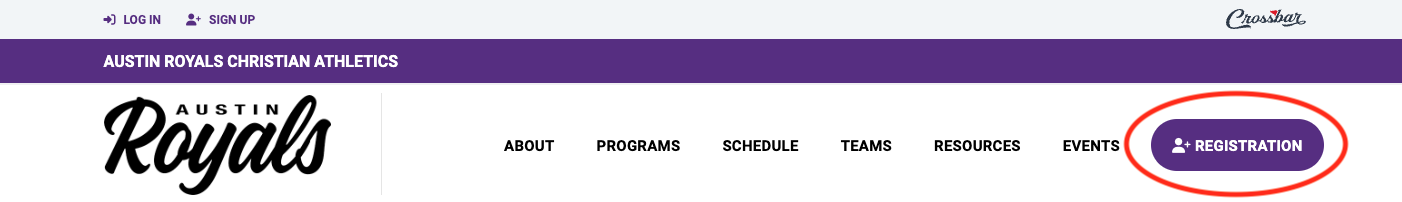 6. Once you have completed the profile or have logged into an existing account, please select the registration link on the right side of the home page.